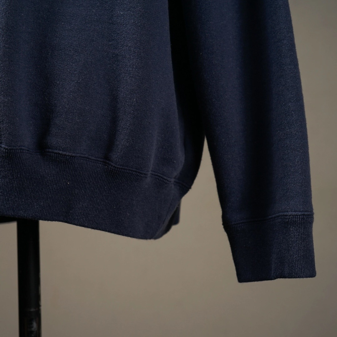 太番手の空紡糸を使用し、シャリ感のある度詰め生地は洗いこむほどに風合いが増すしっかりとした肉感のスウェットです。