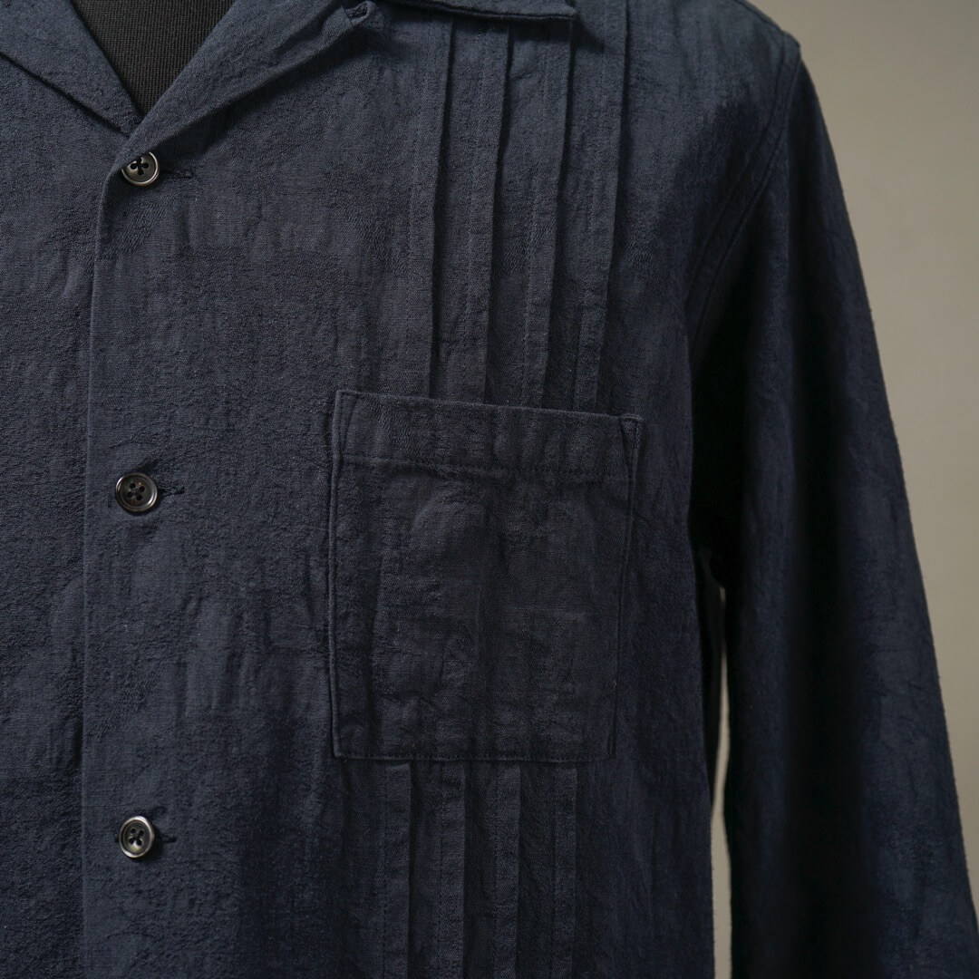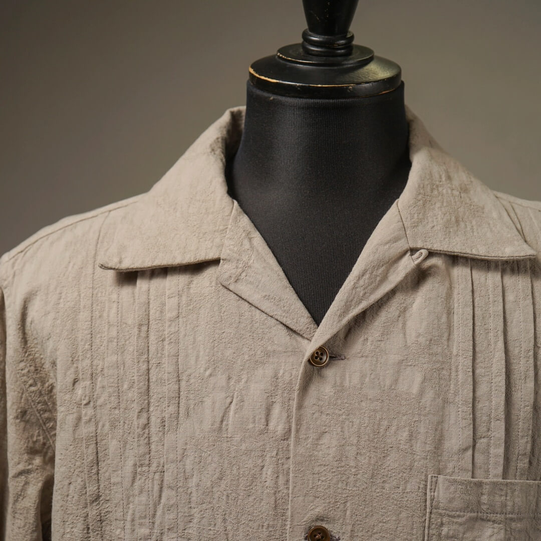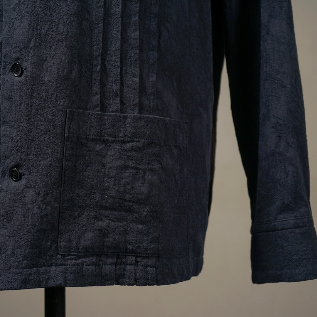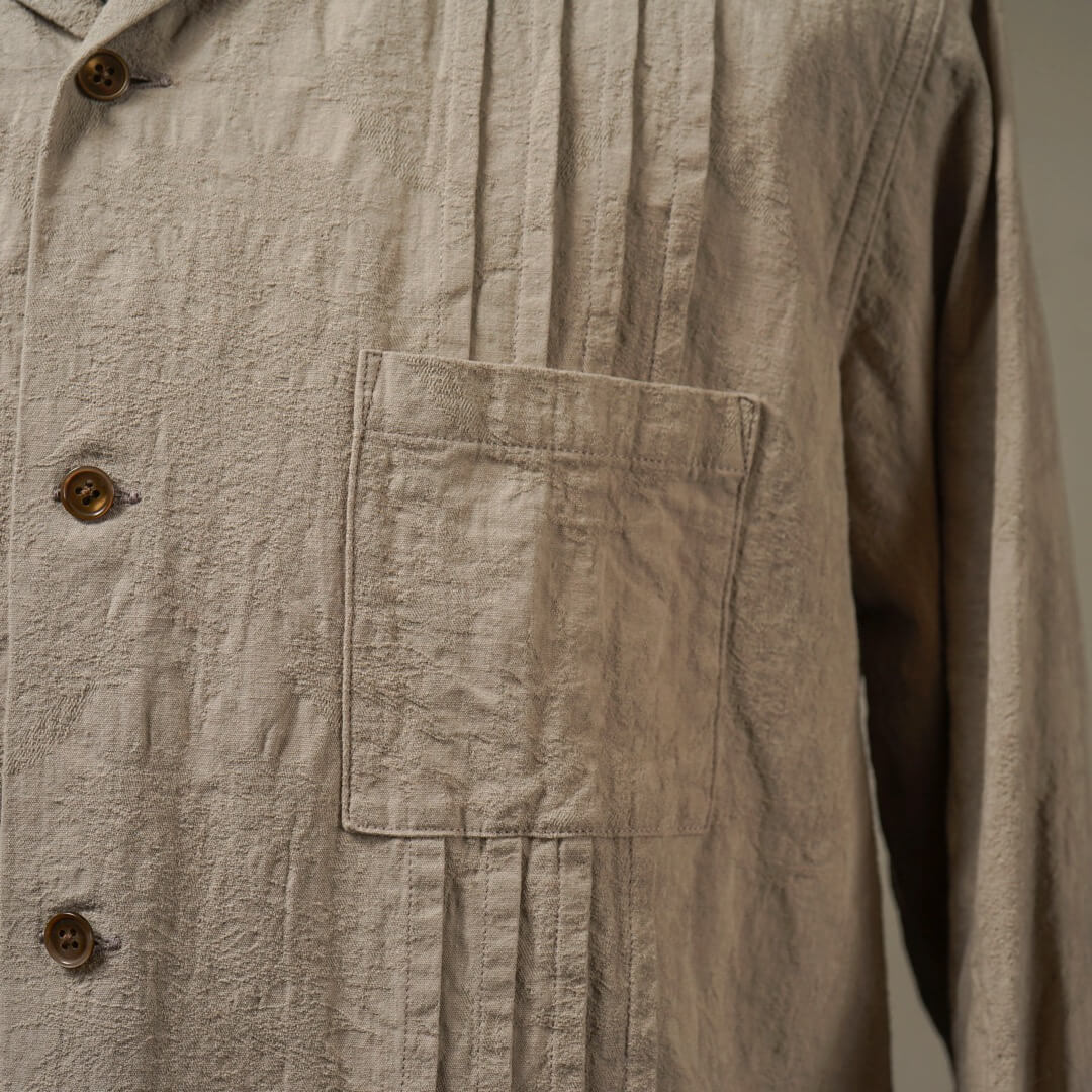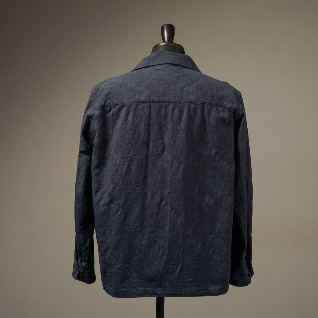 複数の組織で表現された柄部分を製品加工により際立たせつつ、膨らみを持たせヴィンテージライクな表情に仕上げました。