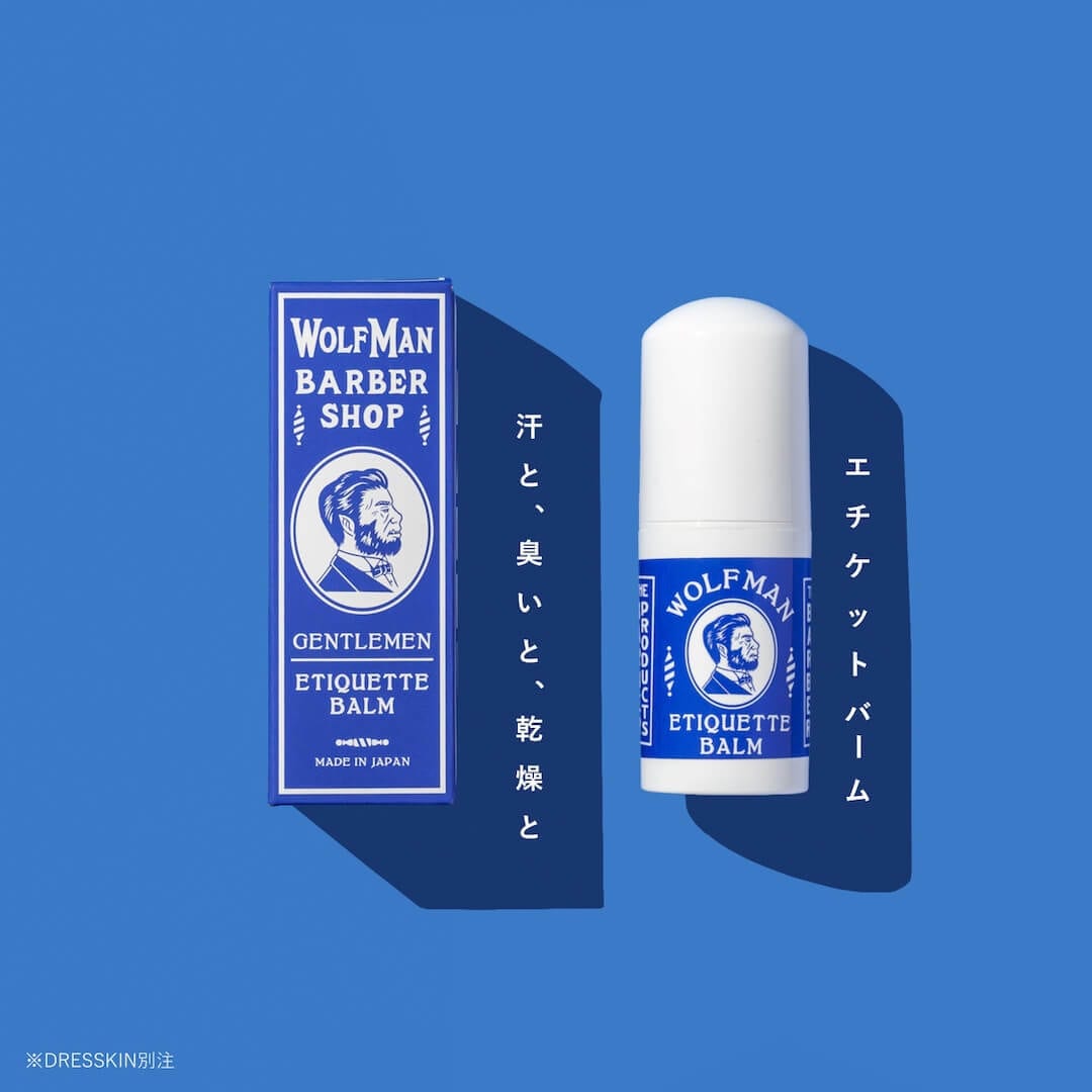 爆発的な人気を誇るDRESSKIN別注 WOLFMAN ヘアウォーターの香りを、汗をかく暑い夏にも、乾燥する冬にも使えるボディバームに落とし込みました。